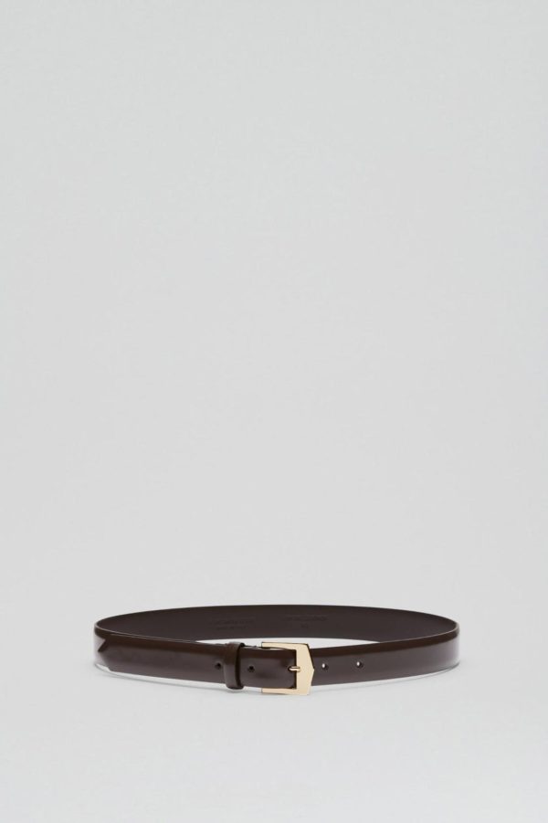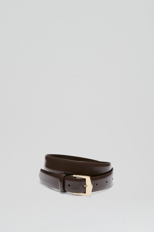 The Pointed Buckle Belt 2.5 in black is reflective of sophisticated elegance. Crafted in Italy from polished leather, the minimalist accessory features a custom Scanlan Theodore brass buckle and adjustable fastening.