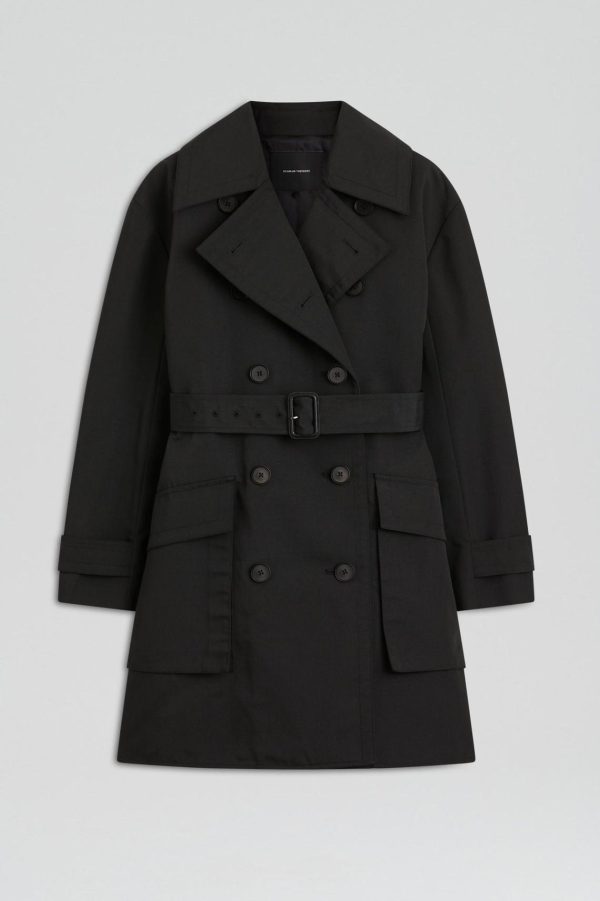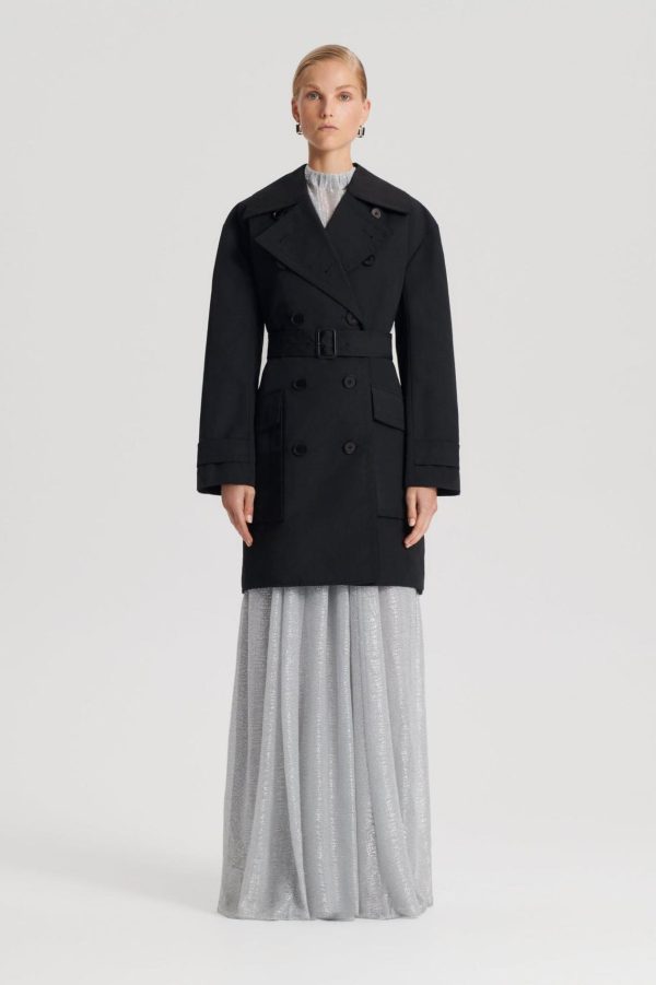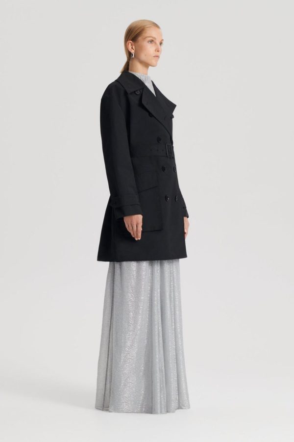 The Trench Coat is a sophisticated interpretation of timeless outerwear. Tailored from a cotton blend, the cropped trench features a classic double-breasted silhouette, button detailing and oversized cargo pockets. Style completely fastened for a chic, structured look or opt to wear undone and layer over refined, daily ensembles.