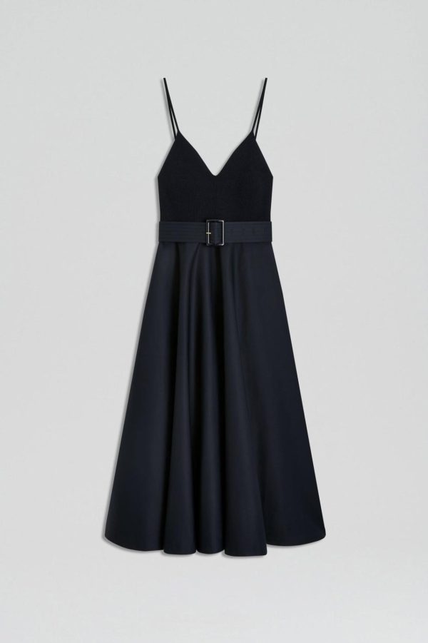 The Crepe Knit Camisole Cotton Dress is imbued with sophisticated elegance. Crafted from Scanlan Theodore’s signature Crepe Knit fabrication, the minimalist A-line silhouette is defined by a flattering v- neckline and thin waistband, before falling to a mid-length skirt that is tailored from 100% cotton. Versatile and effortless, choose to pair with flats for daily ensembles or style with heels for upcoming occasions.