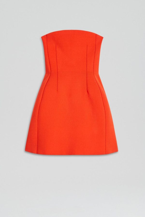 The Crepe Knit Strapless Peplum Dress balances contemporary femininity with sophisticated functionality. Impeccably cut from Scanlan Theodore’s signature Crepe Knit fabrication in a vibrant tangerine colourway, the mini dress is characterised by the strapless neckline and peplum silhouette that is designed to accentuate the waist. Pair with coordinating Crepe Knit pieces and accessories in complementary hues for considered styling.