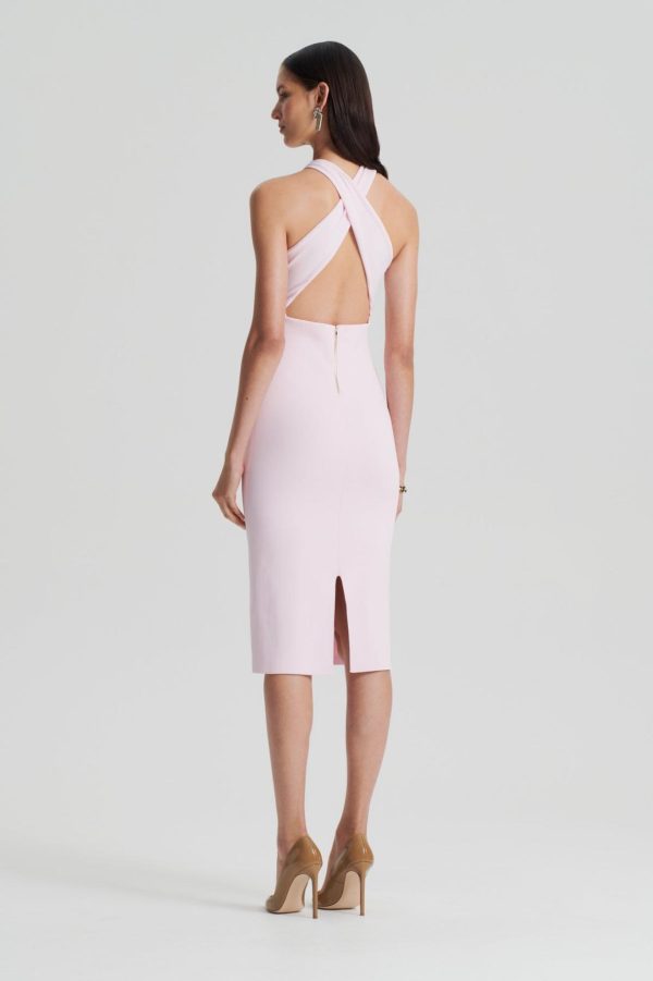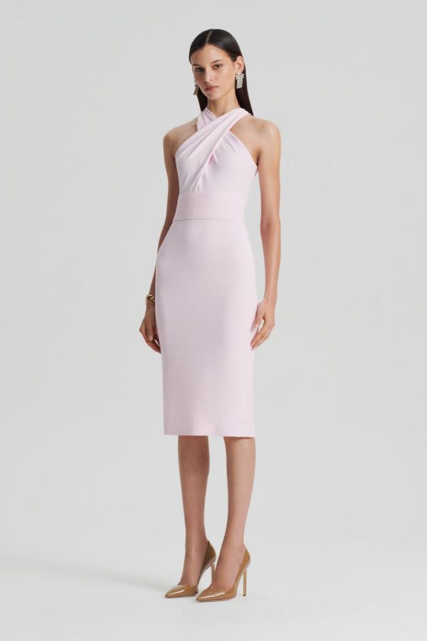 Women Dresses | Scanlan Theodore CREPE KNIT WRAP NECK DRESS Angel