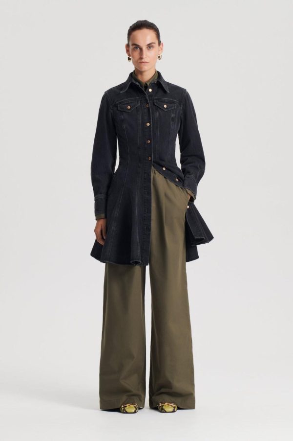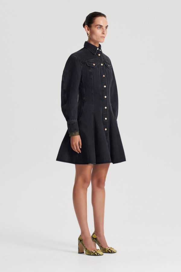 The Denim Mini dress in washed black draws inspiration from signature Scanlan Theodore designs. Crafted from 100% cotton, the long-sleeve dress is tailored through the waist and features statement cocoon sleeves. Showcasing timeless shirting accents, the dress is detailed with rose gold buttons. Pair with luxurious accessories for an elegant ensemble.
