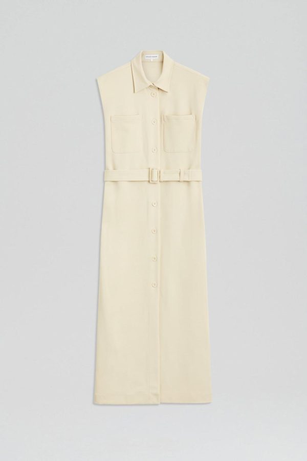 The Italian Patch Pocket Dress embodies sophisticated styling and timeless femininity. Tailored to a mid-length, utility-inspired pocket detailing, tortoiseshell buttons and classic shirting style notes enhance the minimalist silhouette. Style with the coordinating belt for added shape through the waist and pair with monochromatic accessories��for a considered ensemble.