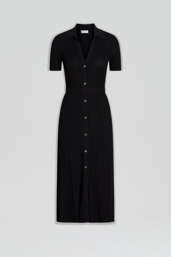 The Pleated Rib Placket Dress is imbued with classic sophistication. Crafted from Scanlan Theodore’s signature pleated rib fabrication, the short-sleeve silhouette is complemented by a button-down front, polo collar and self-belt. The minimalist silhouette invites effortless styling for day or evening wear.