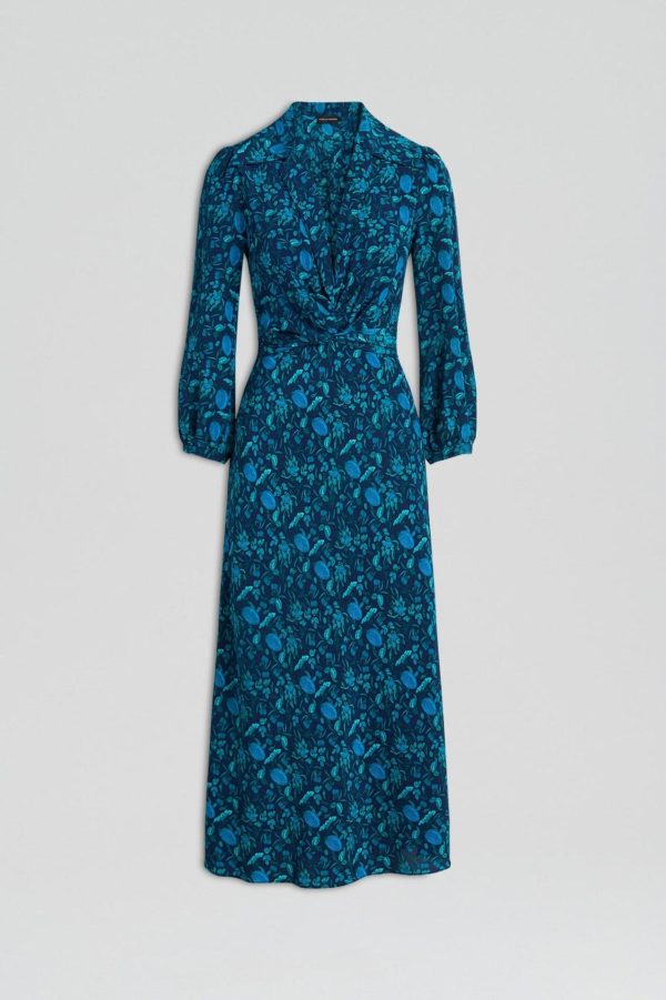 The Silk Botanical Dress emulates style and modernity. Crafted from 100% silk, the dress showcases a floral motif in a colour palette of navy, emerald and teal. Enhance femininity by styling with the exaggerated ties to add shape and dimension. Pair with sleek accessories for upcoming events.