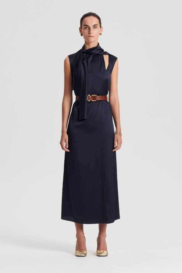 Women Dresses | Scanlan Theodore SILK CRAVAT DRESS Navy