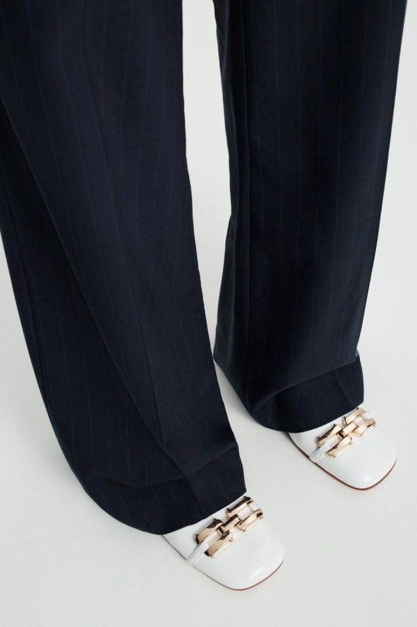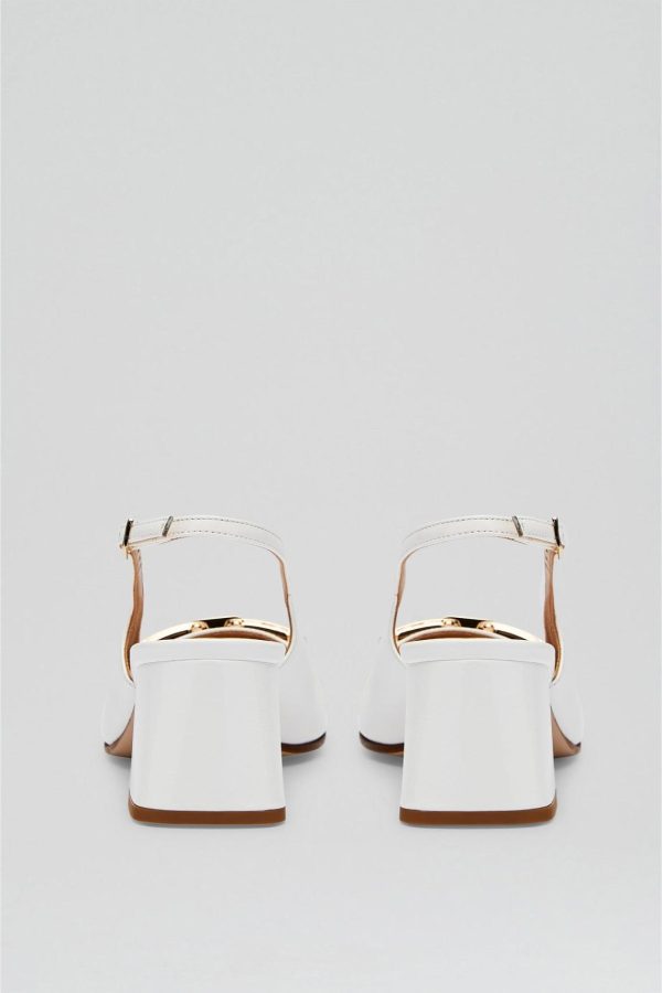 The Gold Trim Slingback 5.5 is a classic silhouette imbued with refined modernity. Crafted from high gloss Italian leather, the squared toe silhouette features a heel strap with buckle fastening. Adorned with gold buckle detailing, the slingback is set atop a flared 5.5cm block heel. Pair with dresses or tailoring for sophisticated styling.