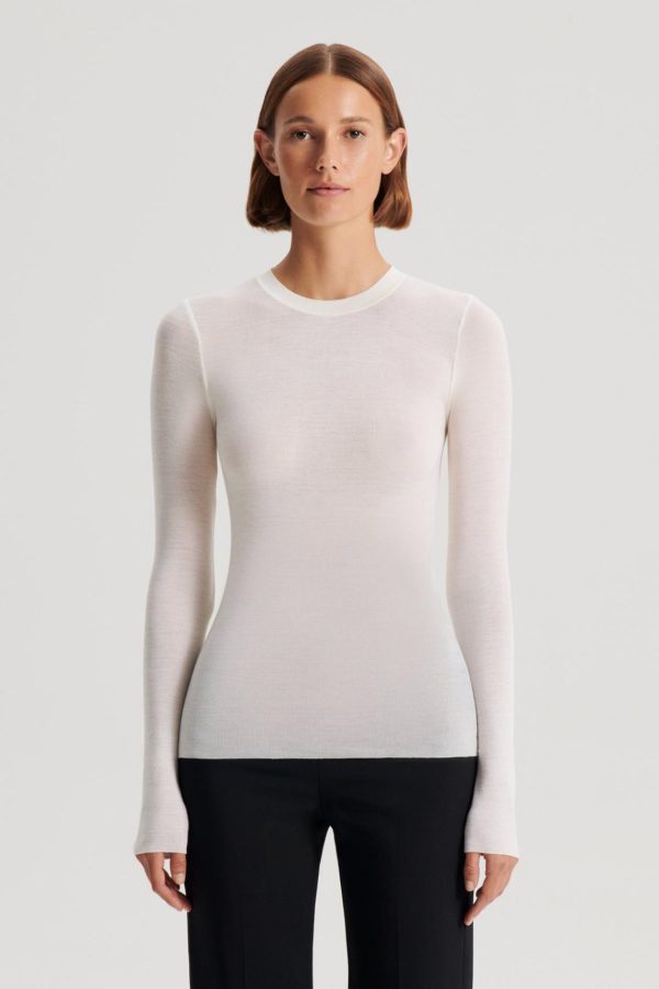 The Babywool Crew Sweater is crafted from Scanlan Theodore’s signature merino wool. The fine wool construction invites effortless stand-alone wear when paired with elevated basics or choose to layer with a babywool singlet for additional coverage.