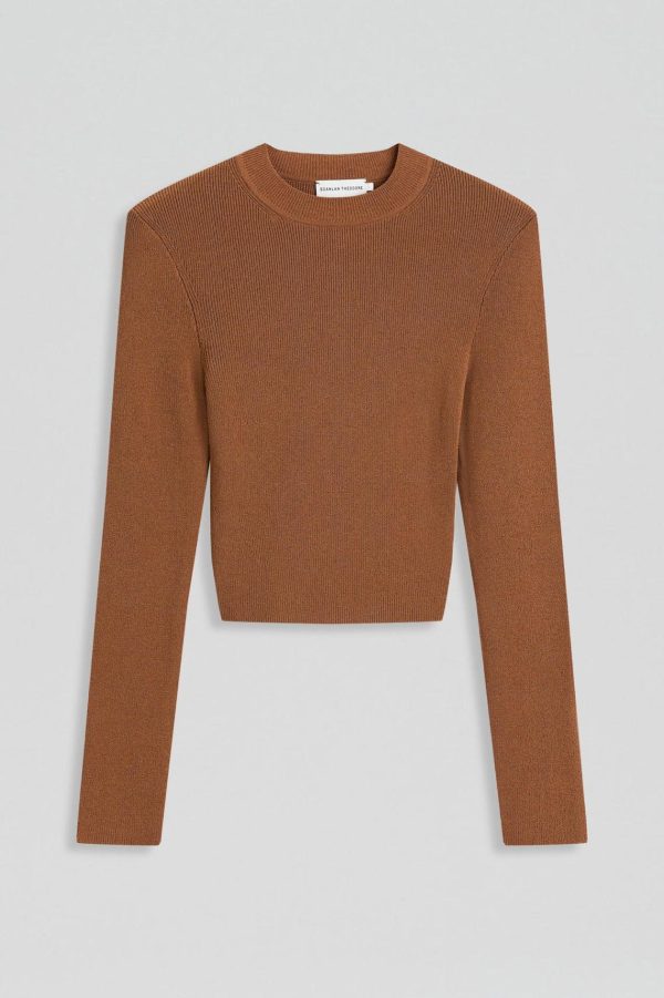 The Crepe Knit Crew Neck Sweater is imbued with luxurious simplicity. Crafted from Scanlan Theodore’s signature Crepe Knit fabrication in a rich spice tone, the minimalist silhouette is defined by the crew neckline and ribbed detailing. Pair with coordinating Crepe Knit pieces and elegant accessories for a timeless interpretation of workwear or style with tailoring for an evening ensemble.