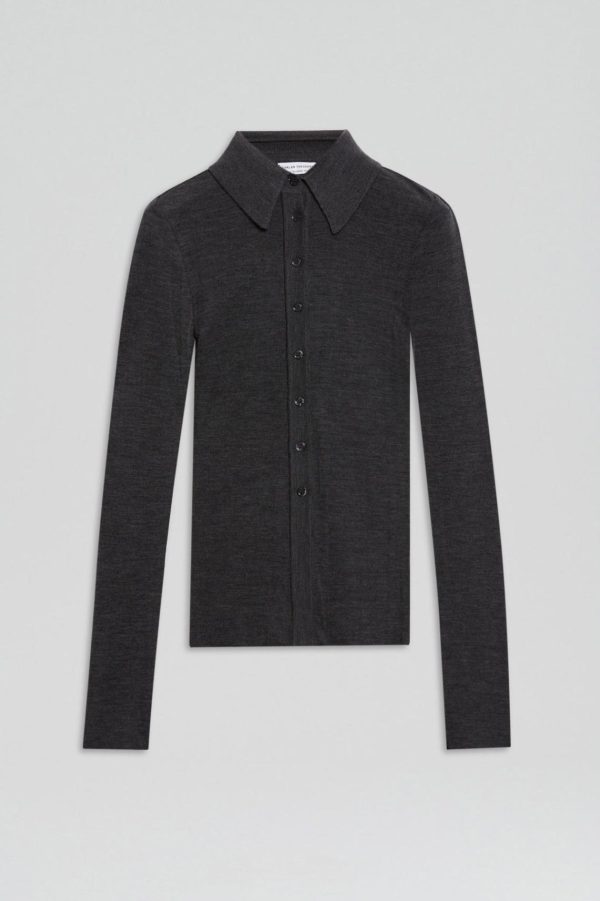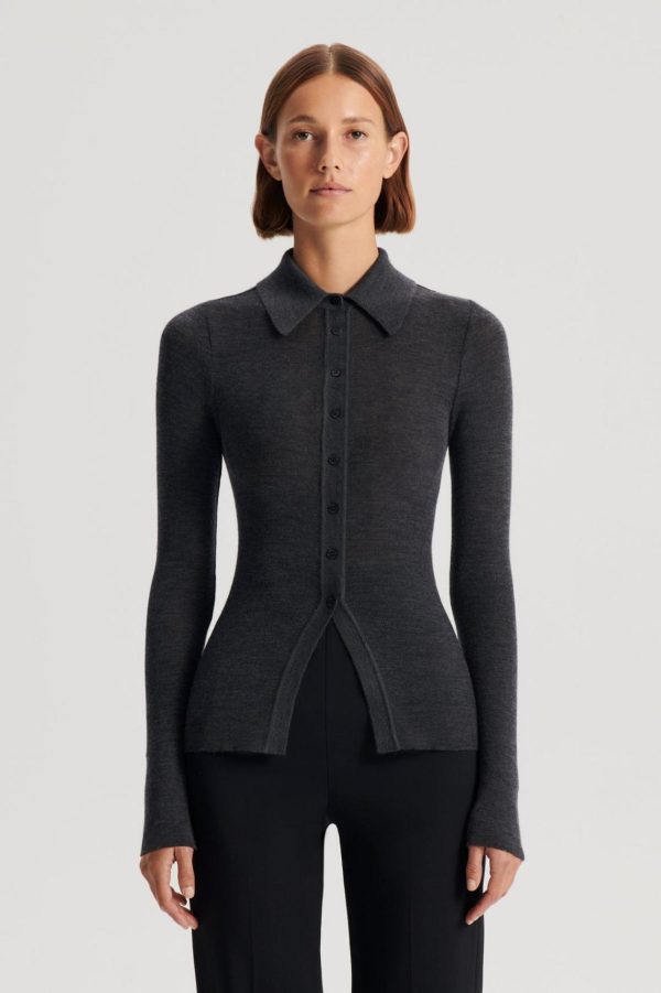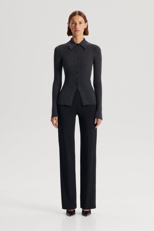 The Babywool Cardigan in charcoal is crafted from Scanlan Theodore’s signature merino wool. Designed as a modern interpretation of a wardrobe essential, the cardigan features a neat polo collar and button-down front. The fine wool construction invites effortless stand-alone wear when paired with elevated basics or choose to layer with a babywool singlet for additional coverage.