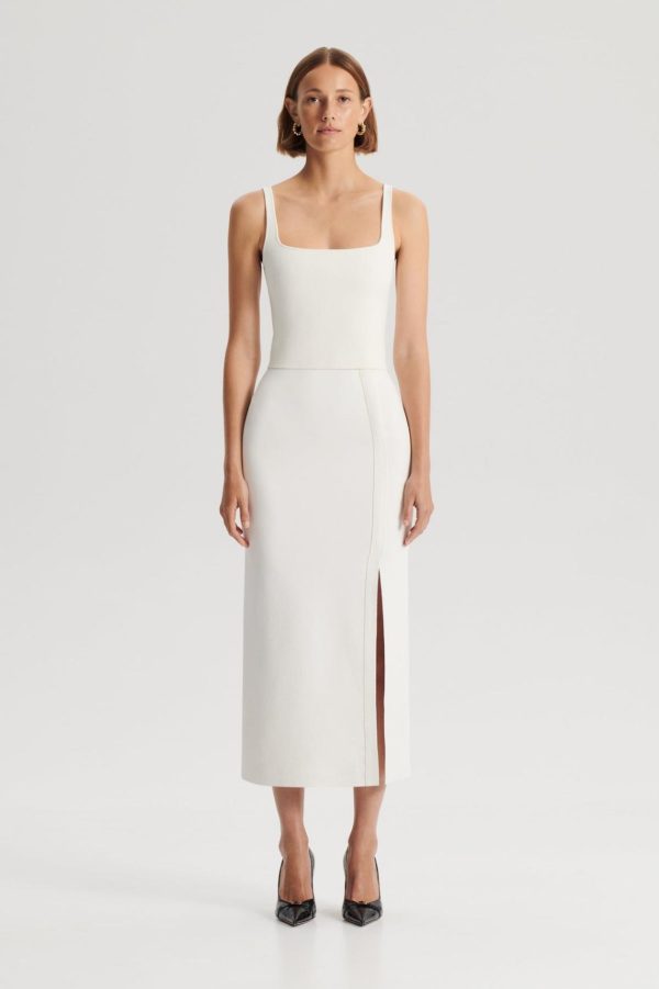 Embodying minimalism and simplicity, our Crepe Knit Square Camisole is the ultimate wardrobe staple. Constructed from our signature crepe knit fabrication, this piece is perfect for everyday styling. Designed for a slim fit, the camisole features a flattering square neckline and wide fixed straps for support. Pair with tailored trousers or high-waisted shorts and heels for a refined ensemble.