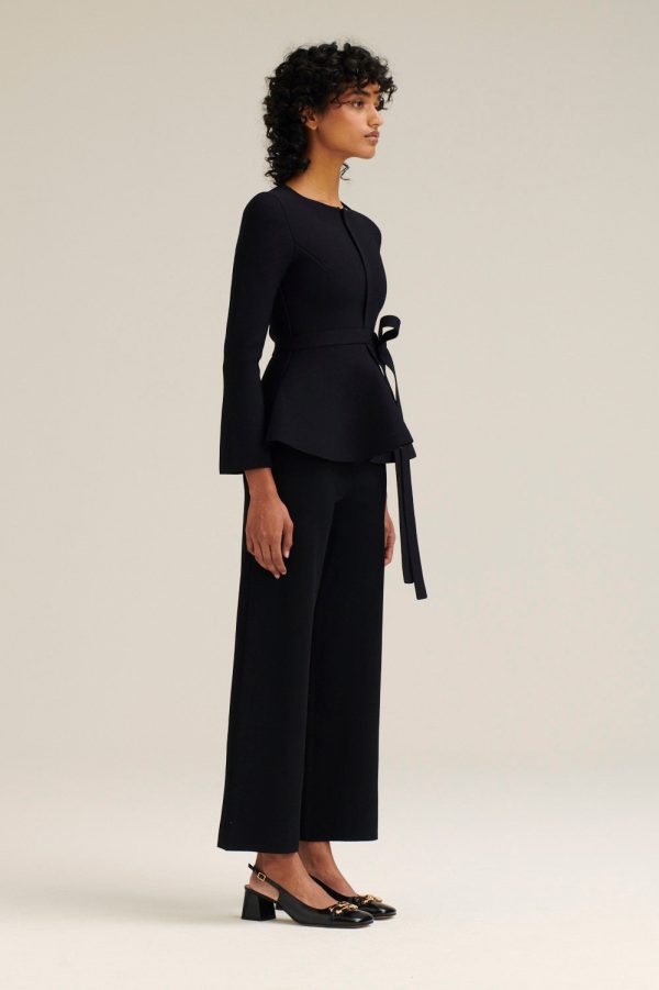 The Micro Crepe Crop Knit Trouser in Black is designed to elevate your wardrobe essentials. Crafted from a stretch knit fabrication, the cropped trouser exudes relaxed styling when paired with coordinating pieces.