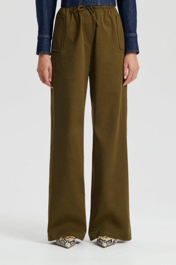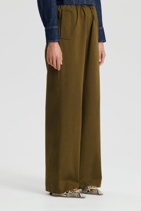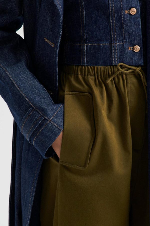 The Pocket Cargo in olive interplays luxurious simplicity with modern style notes. The relaxed, straight-leg trousers are characterised by a sports-inspired elasticated, drawcord waistband and utility-style cargo pockets. Pair back with elevated wardrobe essentials and sophisticated outerwear for a contemporary ensemble.