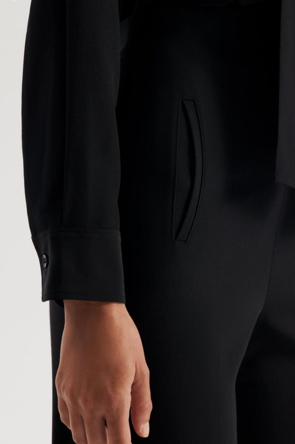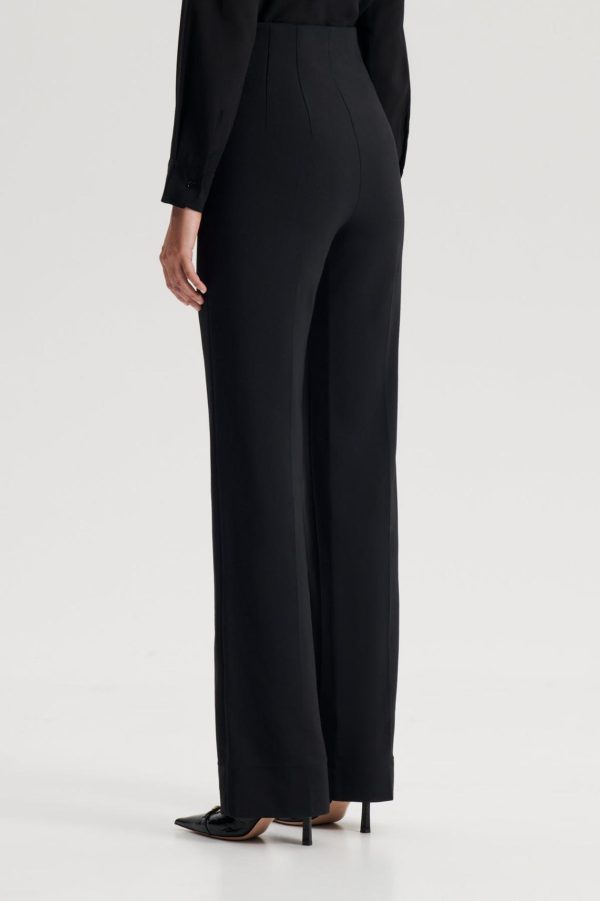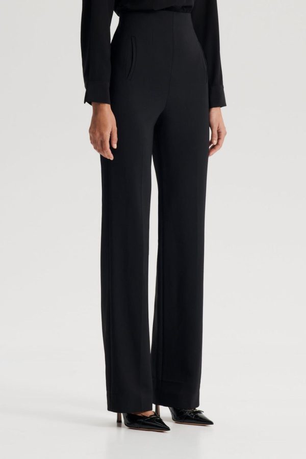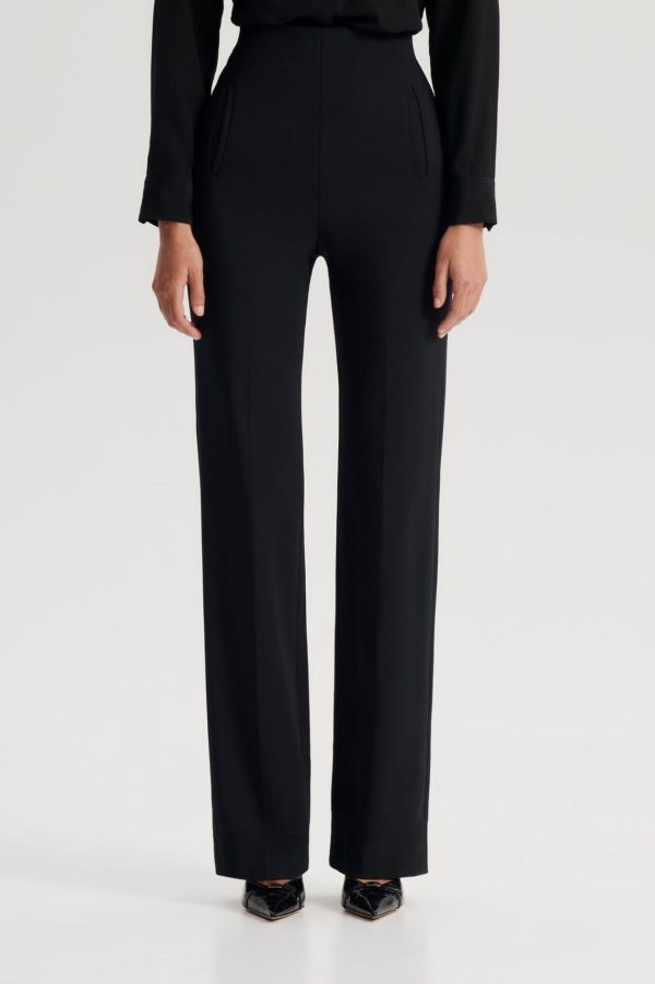 The Tailored High Waist Trouser is designed as a timeless piece. The floor length style is tailored to a straight leg silhouette, and features neatly pressed front creases. The high-rise waist is detailed with zip pocket detailing, and concealed side zip fastening. Style with a printed shirt or Crepe Knit essentials for an elevated evening look.